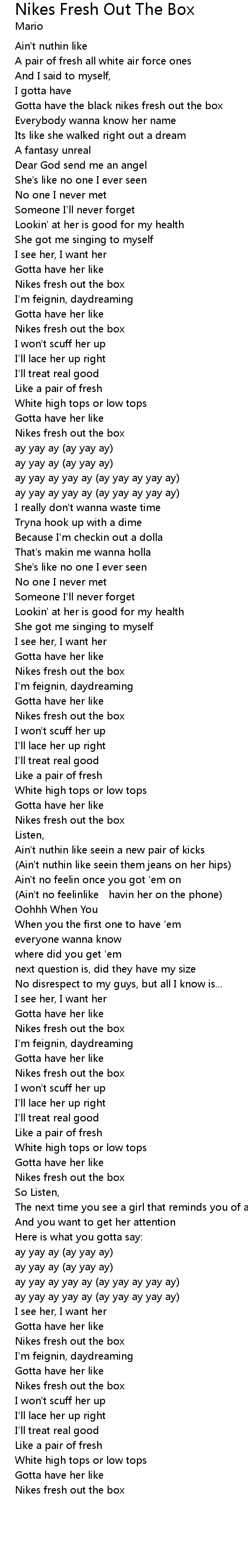| Song | Nikes Fresh Out The Box |
