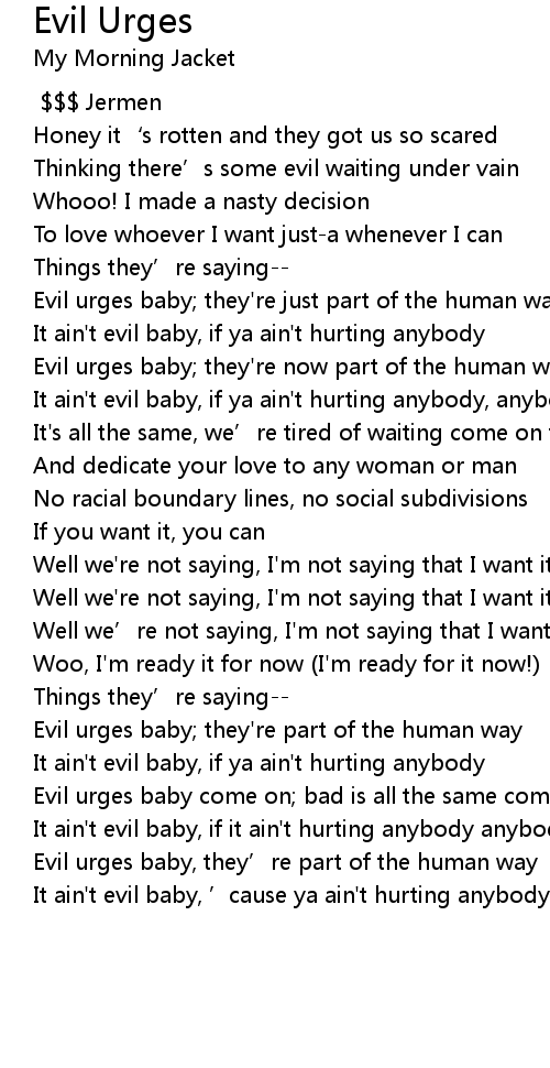 | [04:17.79] | Evil urges baby come on; bad is all the same come on now |