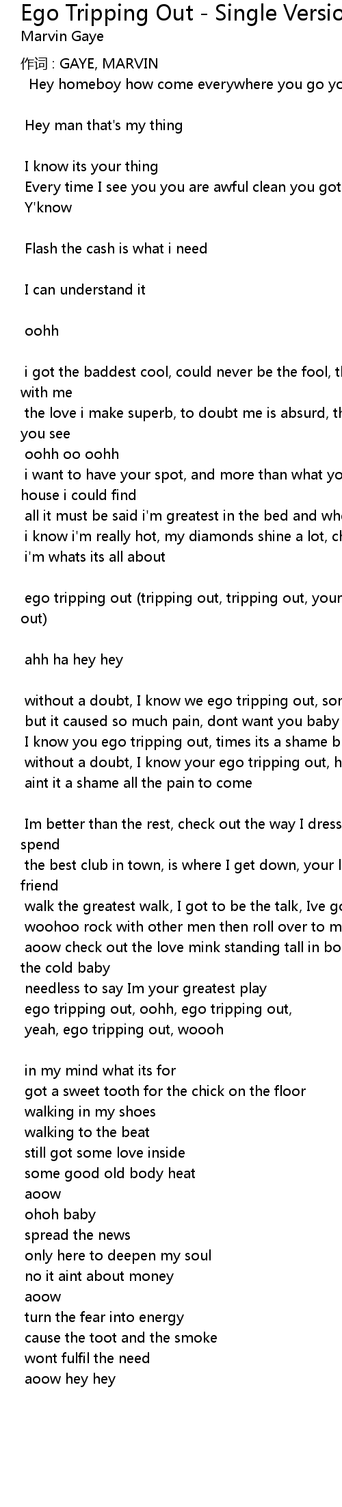 | ego tripping out (tripping out, tripping out, your tripping out, your tripping out) | |