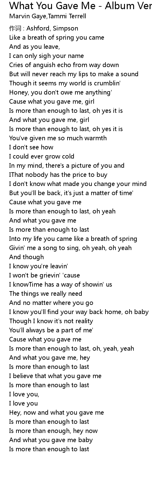 | Givin' me a song to sing, oh yeah, oh yeah | |