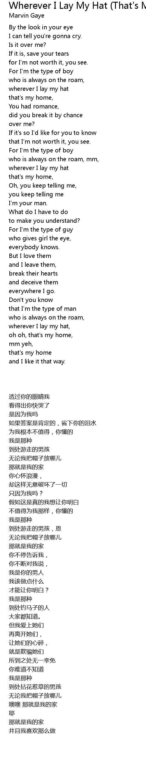 Wherever I Lay My Hat (That's My Home) Lyrics