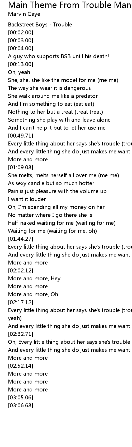 Every little thing about her says she's trouble (trouble, trouble yeah) |