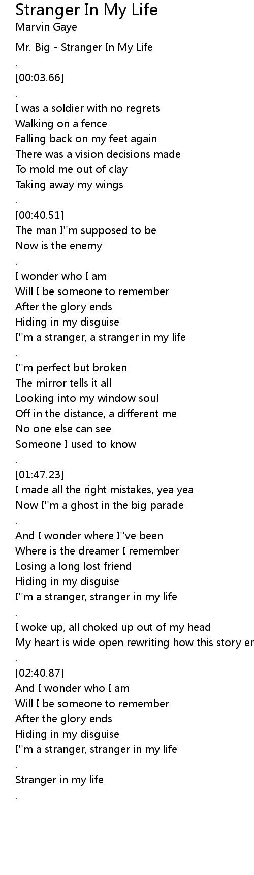 Stranger in my life |