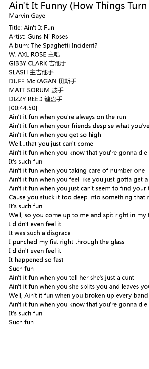 | [03:47.91] | Well, Ain't it fun when you broken up every band that you ever begun |