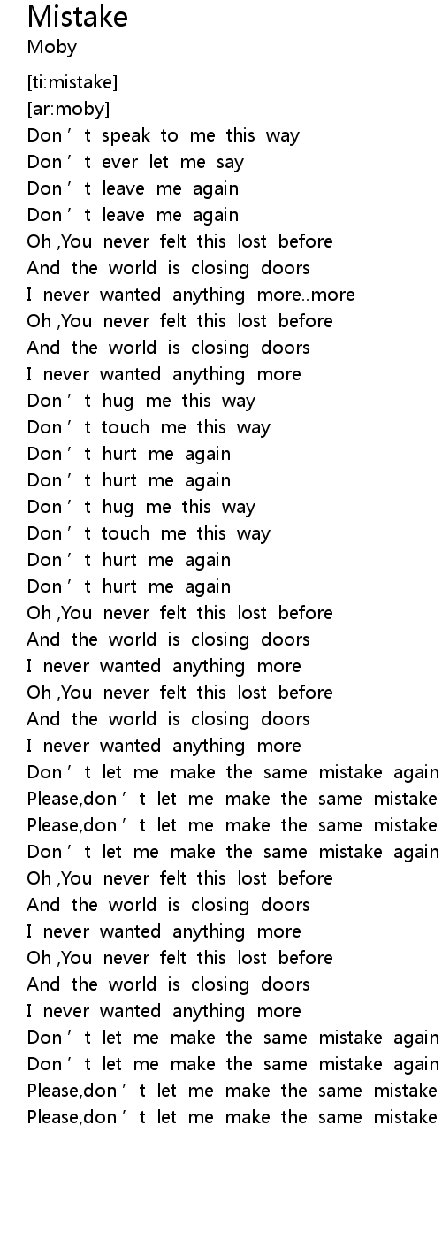 | [02:04.307] | Don ' t let me make the same mistake again |