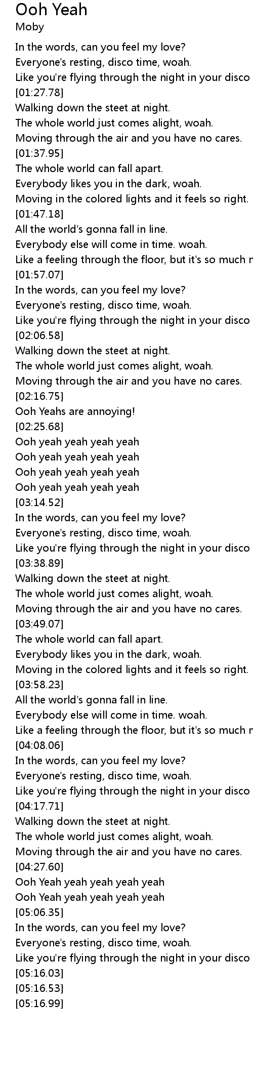 Ooh Yeah yeah yeah yeah yeah |