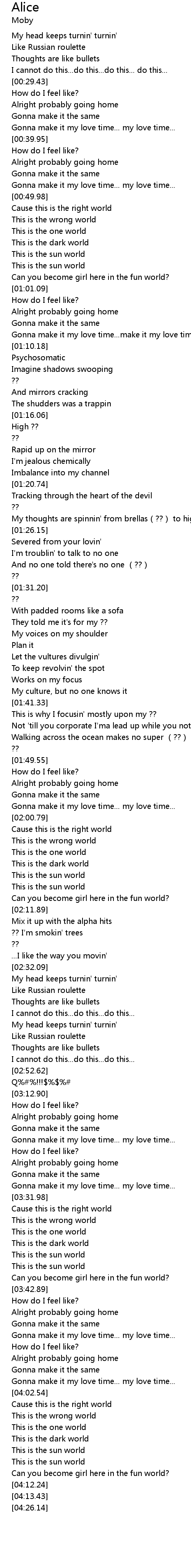 | [01:23.50] | My thoughts are spinnin' from brellas?? to higher levels |