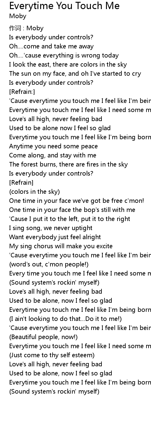 | ' Cause everytime you touch me I feel like I' m being born | |