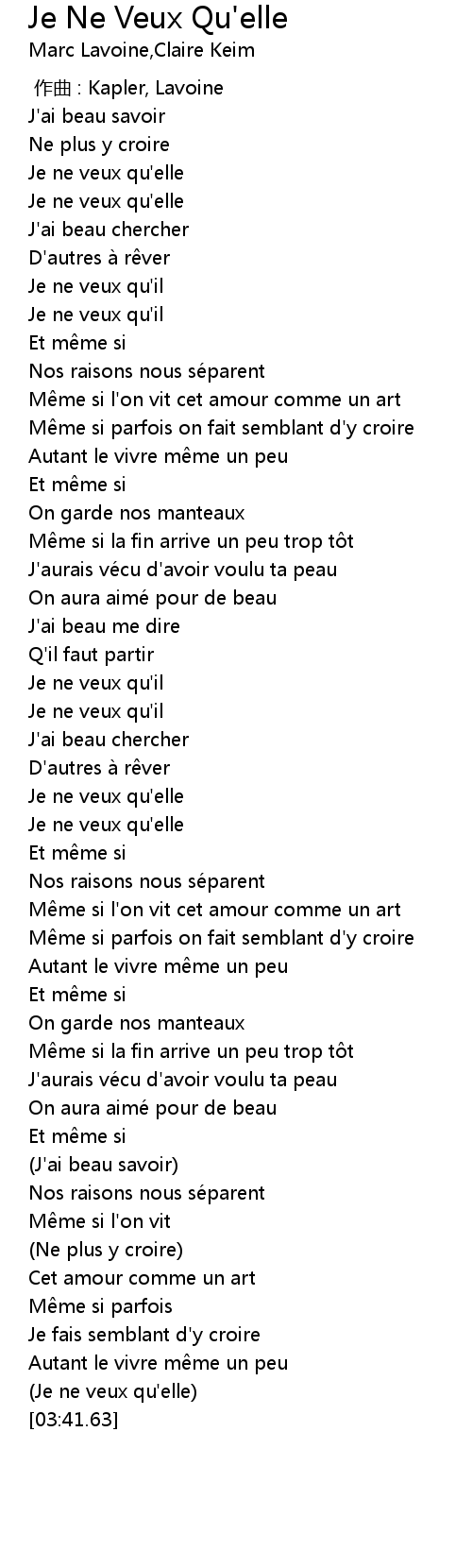 | [03:38.86] | (Je ne veux qu'elle) |