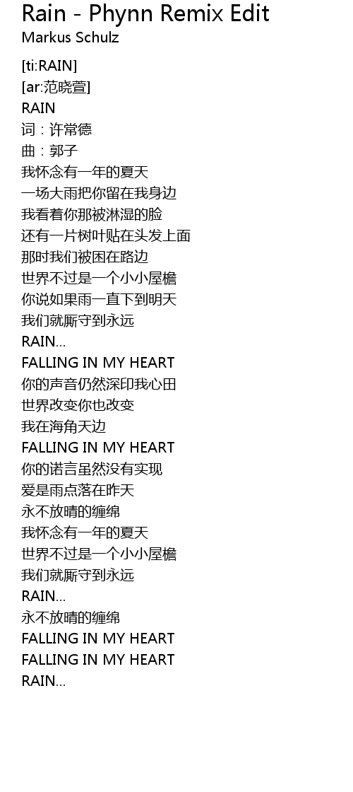 | [00:24.00] | yī chǎng dà yǔ bǎ nǐ liú zài wǒ shēn biān |