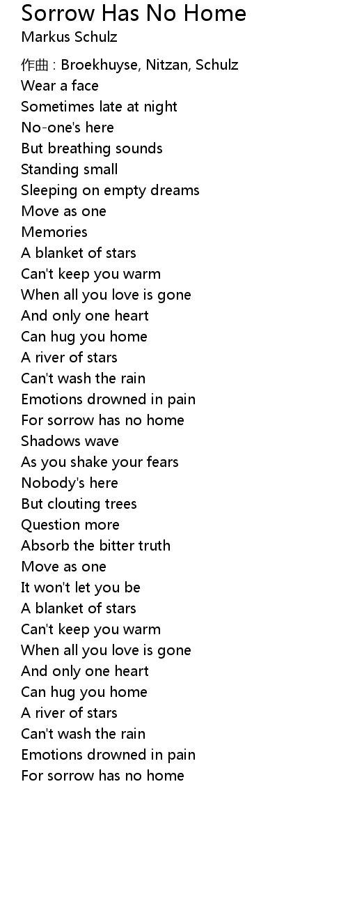 | Song | Sorrow Has No Home |
