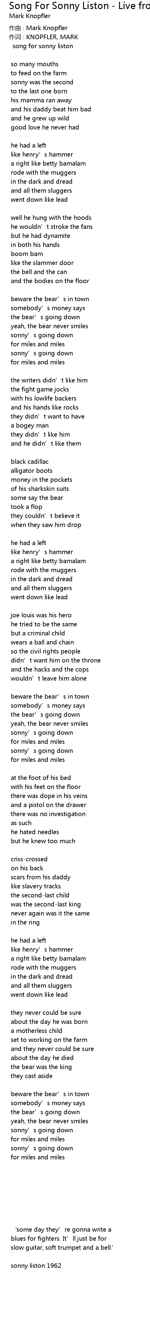 | Song | Song For Sonny Liston - Live from Shangri-La Studios |
