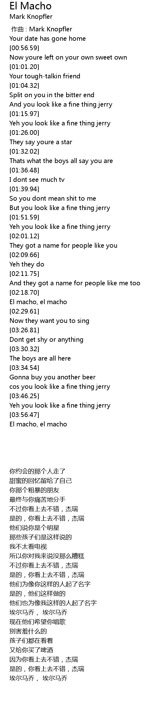 | [00:00.00] | zuo qu : Mark Knopfler |