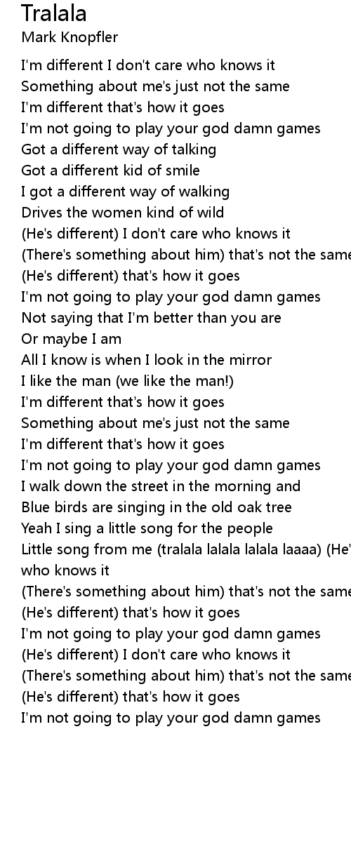Little song from me (tralala lalala lalala laaaa) (He's different) I don't care who knows it |