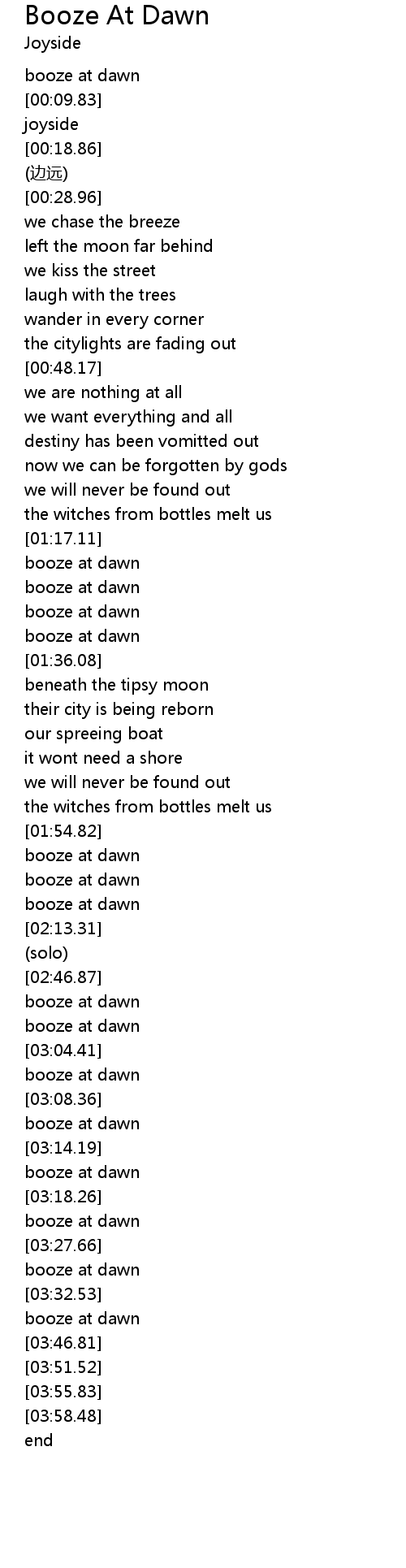 | [03:00.22] | booze at dawn |