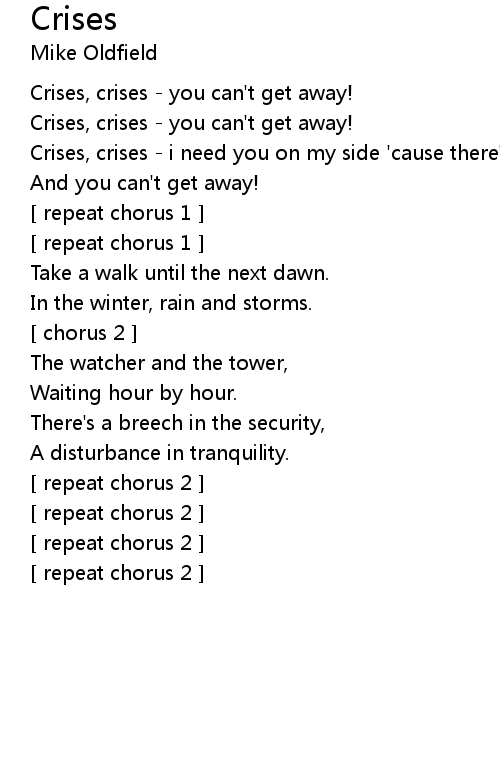 | Crises, crises - i need you on my side 'cause there's a crisis. | |