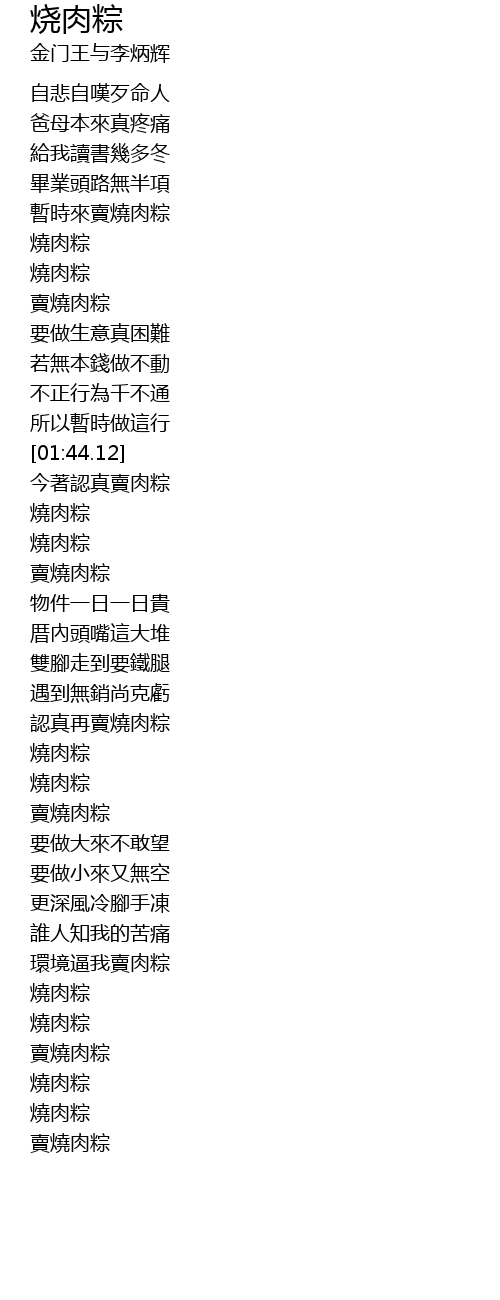 | [01:56.08] | 賣燒肉粽 |