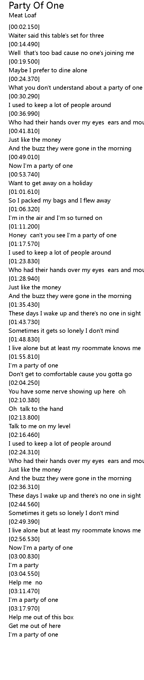 Honey can't you see I'm a party of one |