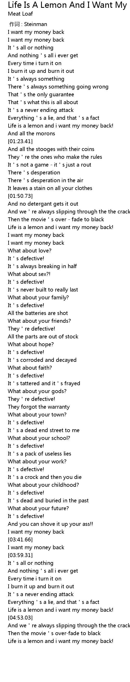 | [04:46.72] | Life is a lemon and i want my money back! |