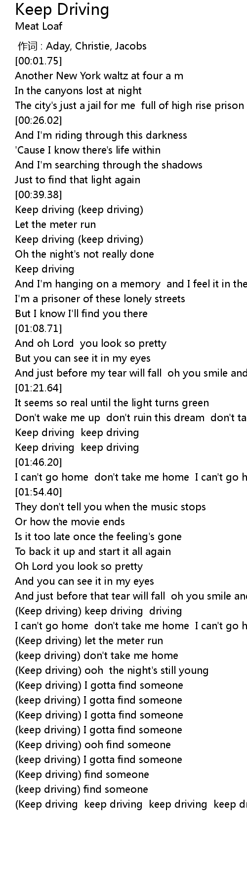 | [03:17.14] | Keep driving keep driving keep driving keep driving keep driving |