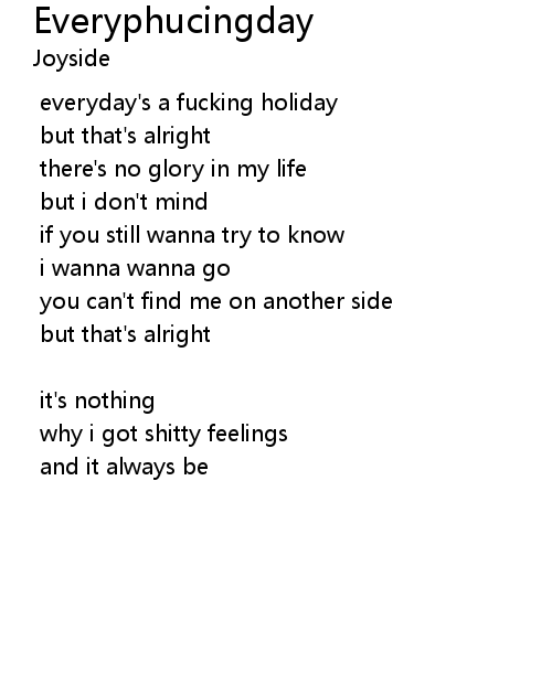| everyday' s a fucking holiday | |