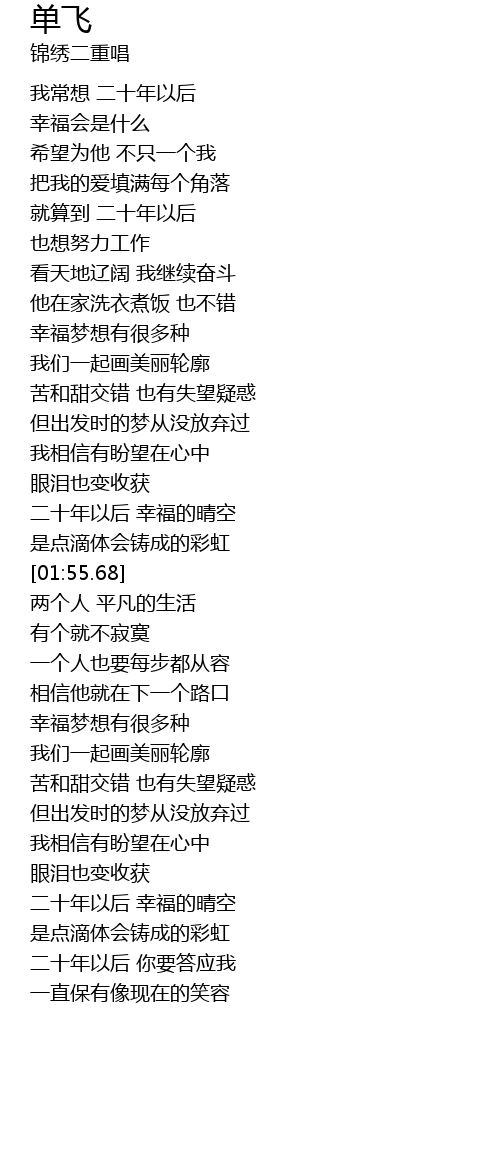 | [01:44.18] | èr shí nián yǐ hòu xìng fú de qíng kōng |