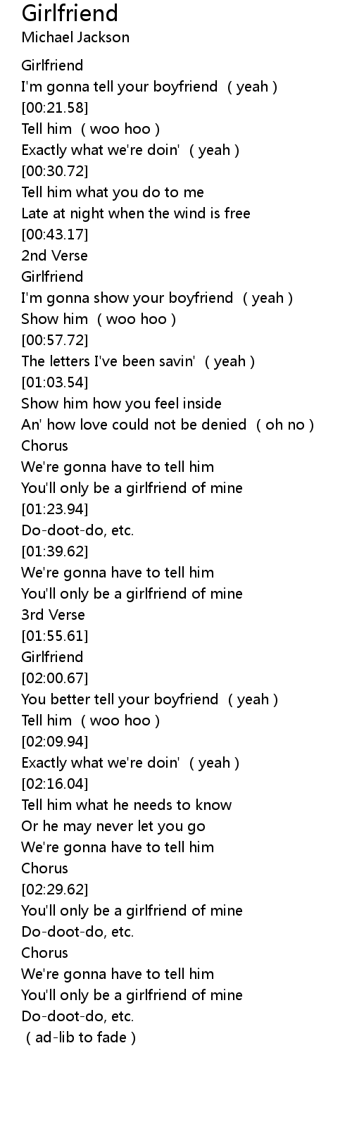 | [00:16.61] | I'm gonna tell your boyfriend (yeah) |