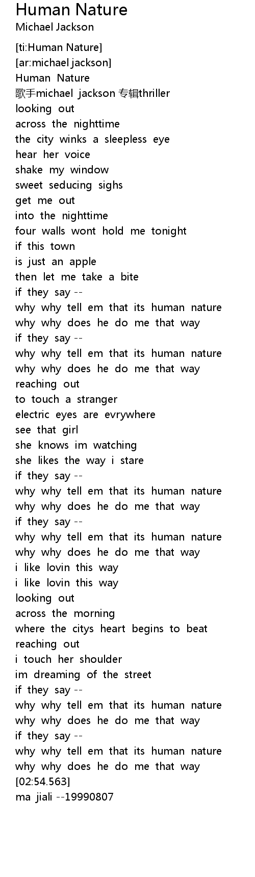 | [00:04.740] | gē shǒu michael jackson zhuān jí thriller |