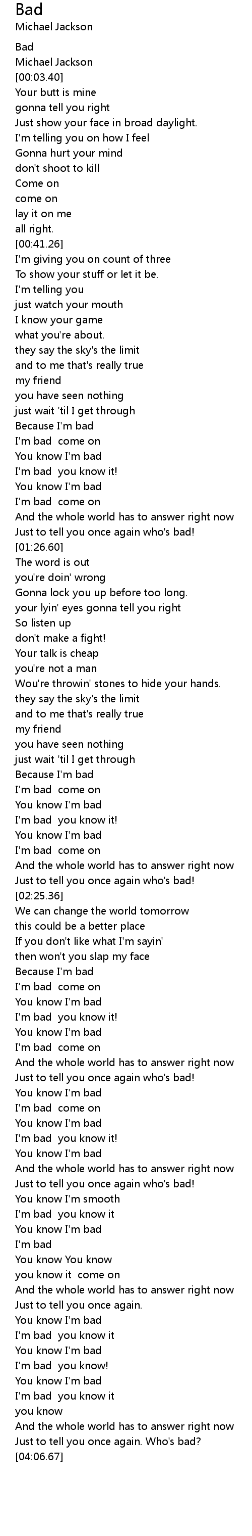Just to tell you once again. Who's bad? |