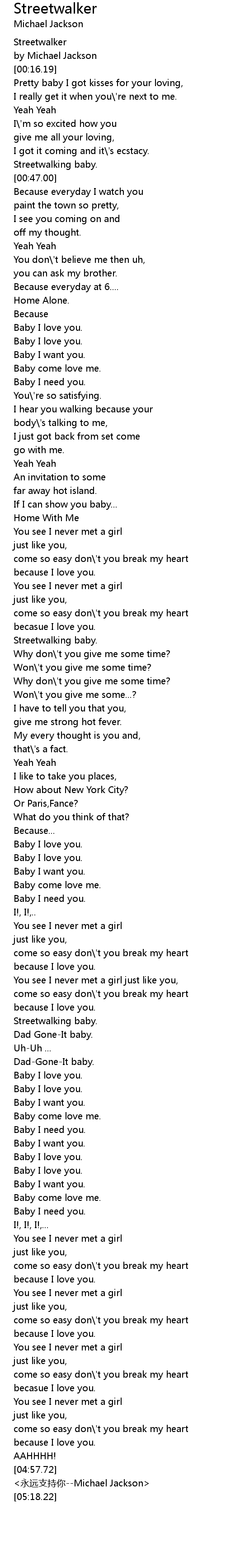 | [05:02.17] | yǒng yuǎn zhī chí nǐ Michael Jackson |