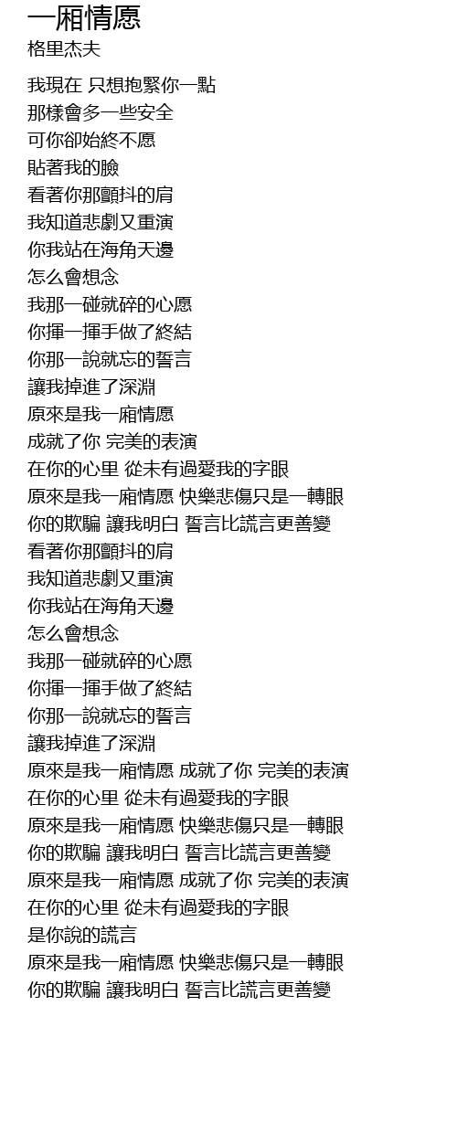 | [03:19.92] | 在你的心里 從未有過愛我的字眼 |