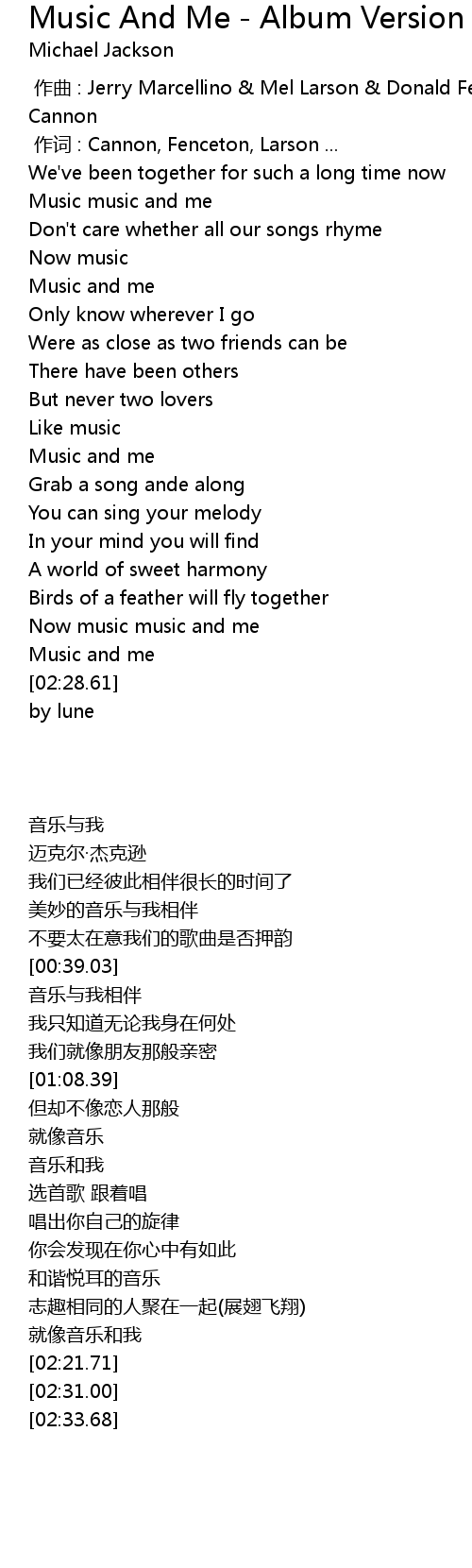 | [00:01.00] | zuò cí : Cannon, Fenceton, Larson ... |