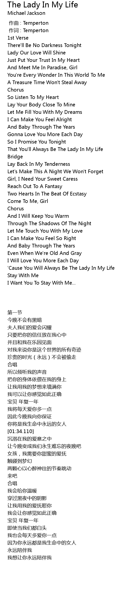 | [01:23.110] | That You' ll Always Be The Lady In My Life |