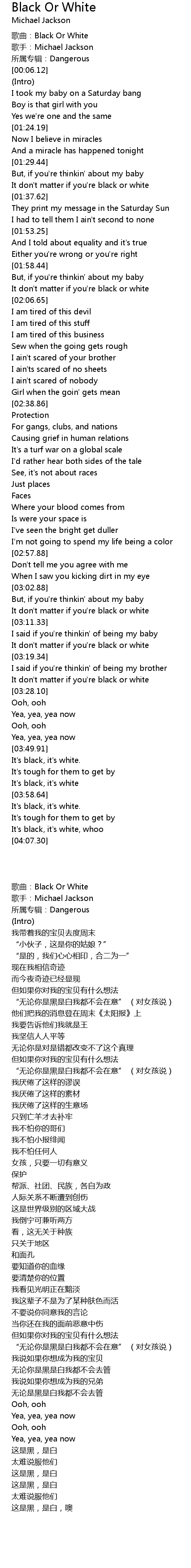 | [00:02.89] | 歌曲:Black Or White |