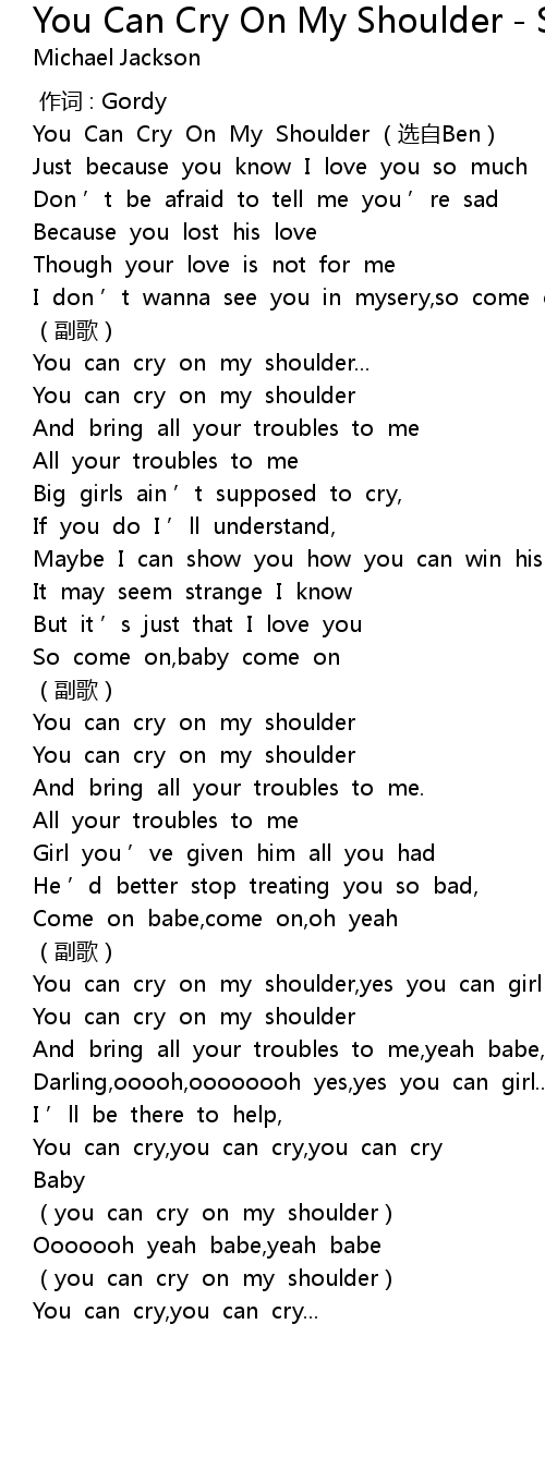 | [00:01.74] | You Can Cry On My Shoulder (选自Ben) |