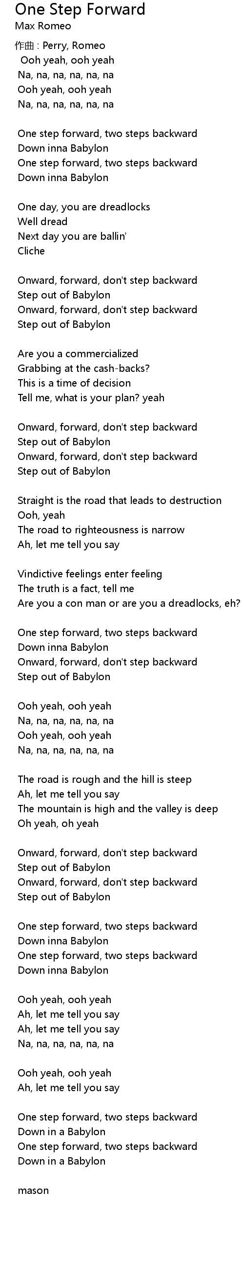 | Step out of Babylon | |