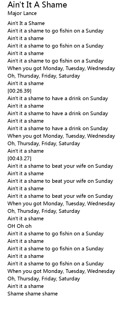 Ain't it a shame to beat your wife on Sunday |