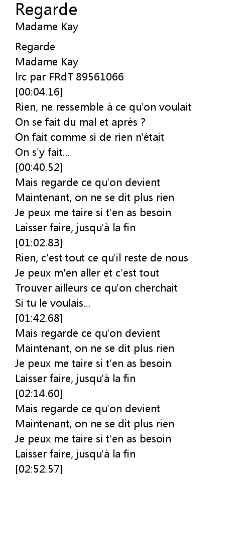 | [00:00.69] | Regarde |