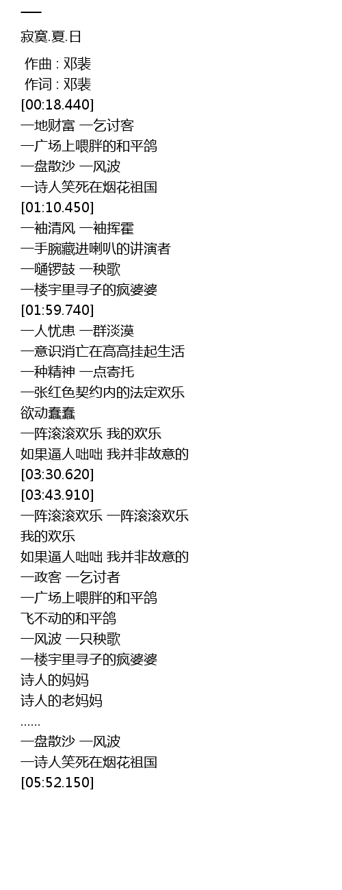 | [00:48.300] | 一广场上喂胖的和平鸽 |