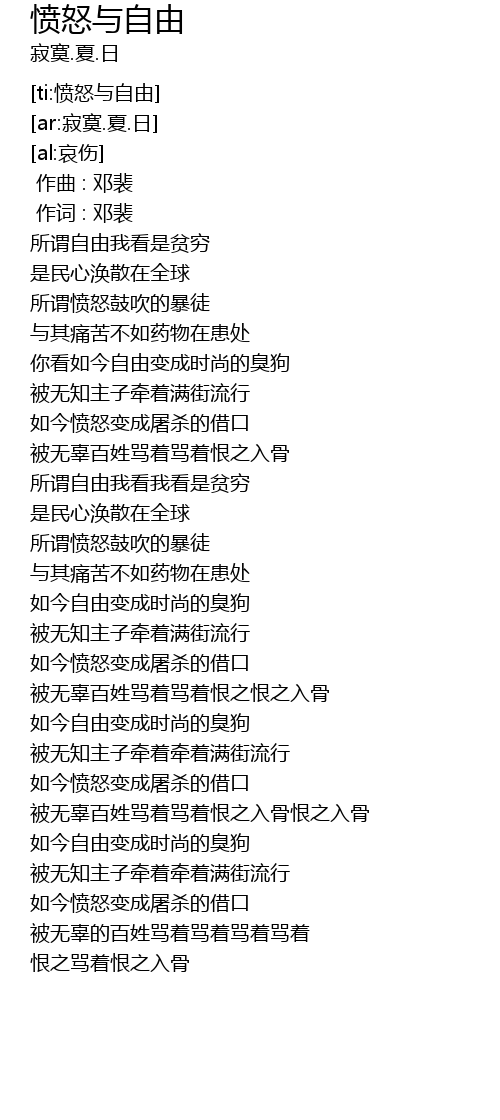 | [02:00.24] | 所谓自由我看我看是贫穷 |