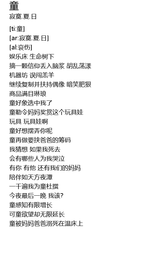 | [06:33.46] | 童被妈妈爸爸溺死在温床上 |