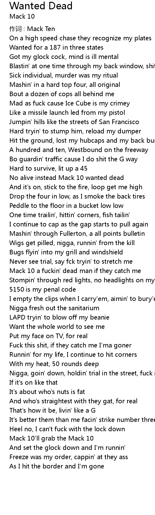 | No alive instead Mack 10 wanted dead | |