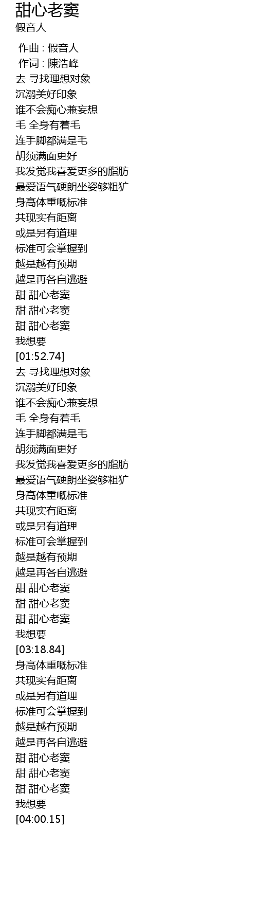 | [01:40.90] | 甜 甜心老窦 |