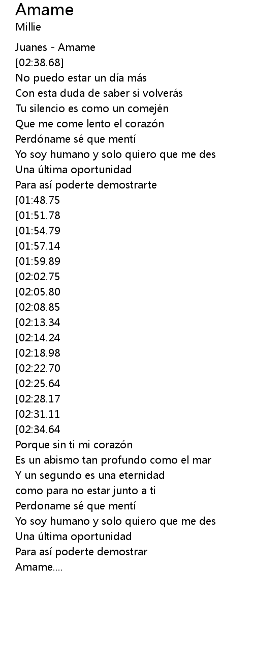 | [03:27.09][02:14.24][01:00.50] | Amame por ma s que quieras otra vez |