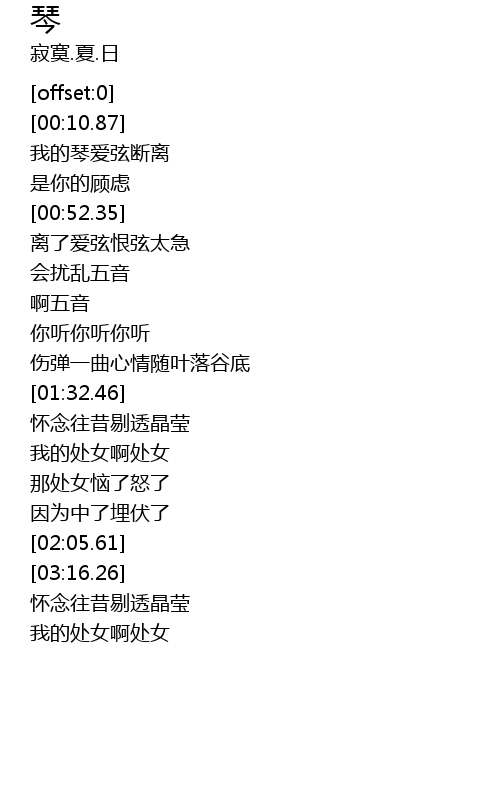 | [01:44.32] | wǒ de chǔ nǚ a chǔ nǚ |