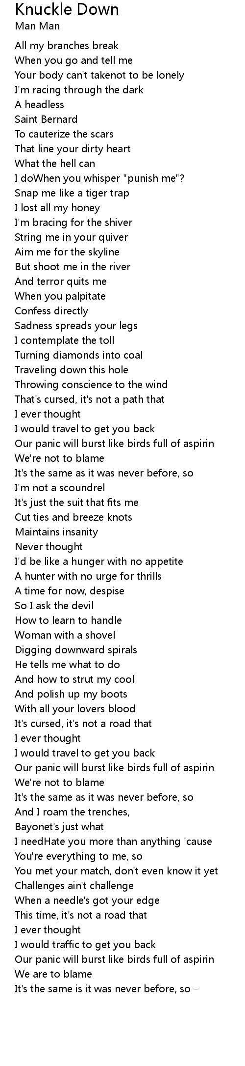 Our panic will burst like birds full of aspirin |