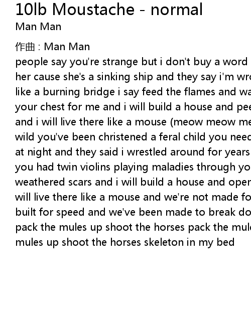 | people say you' re strange but i don' t buy a word of it people say stay away from her cause she' s a sinking ship and they say i' m wrong that my brain operates like a burning bridge i say feed the flames and watch you run away and open up your chest for me and i will build a house and peel apart your weathered scars and i will live there like a mouse meow meow meow meow and people say you' re wild you' ve been christened a feral child you need pornography to help you sleep at night and they said i wrestled around for years with my own demise because you had twin violins playing maladies through your eyes and peal apart your weathered scars and i will build a house and open up your chest for me and i will live there like a mouse and we' re not made for these times and we' re not built for speed and we' ve been made to break down and we' ve been made to need pack the mules up shoot the horses pack the mules up shoot the horses pack the mules up shoot the horses skeleton in my bed |