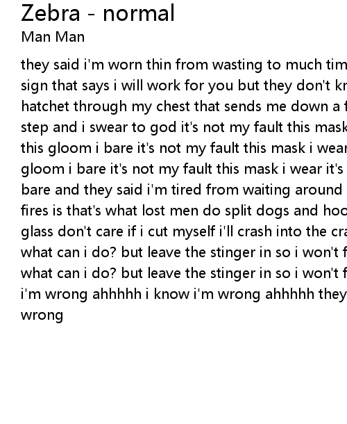 they said i'm worn thin from wasting to much time on your sidelines waving a sign that says i will work for you but they don't know your kiss to me is a hatchet through my chest that sends me down a flight of stairs hitting every step and i swear to god it's not my fault this mask i wear it's not my fault this gloom i bare it's not my fault this mask i wear it's not my fault this gloom i bare it's not my fault this mask i wear it's not my fault this gloom i bare and they said i'm tired from waiting around for you the reasons i start fires is that's what lost men do split dogs and hoof in mouth you are broken glass don't care if i cut myself i'll crash into the crash you stung me bad, what can i do? but leave the stinger in so i won't forget you you stung me bad, what can i do? but leave the stinger in so i won't forget you ahhhhh they said i'm wrong ahhhhh i know i'm wrong ahhhhh they said i'm wrong ahhhhh i was born wrong |