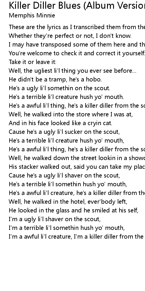 I'm a awful li'l creature, I'm a killer diller from the south. |