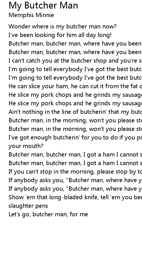 Ain't nothing in the line of butcherin' that my butcher man can't do